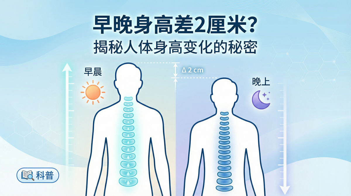 许多家长发现早晨刚起床测量孩子身高,往往比晚上测得的数值略高。这种一天之内身高的波动让人困惑,甚至怀疑测量是否有误或孩子发育出现问题。事实上,人体身高在晨昏间的细微差异是正常的生理现象,由脊柱受力和恢复的机制所决定。本文将基于权威研究文献,深入解析为何早晚测量身高会不同,并提供科学测量建议,帮助家长正确看待这一现象。 日内身高波动的生理机制 人体脊柱由26块椎骨和23个椎间盘构成。椎间盘含有大量水分,白天在地心引力作用下逐渐被压缩:站立或坐立时,重力持续挤压脊柱,椎间盘内的水分缓慢被挤出,使椎间隙变窄,从而身高在白天略微缩短。到了夜间平卧睡觉时,脊柱不再承受体重压力,椎间盘得以重新吸收水分,厚度恢复,身高也随之回弹。简单来说,早晨起床时身高最高,傍晚时则略矮一些——第二天经过一夜的休息,身高又会恢复到前一天早晨的水平。 除了椎间盘的弹性压缩与复原,肌肉和关节的日间疲劳变化也会影响身高测量值。白天长时间的站立行走使骨骼肌略有疲劳性收缩,人体姿势难免有些许放松;同时,下肢各关节软骨在整日负重后出现轻微压缩,这些因素叠加进一步加剧了身高的“缩水”。因此,晚上测量身高较早晨低些,不仅因